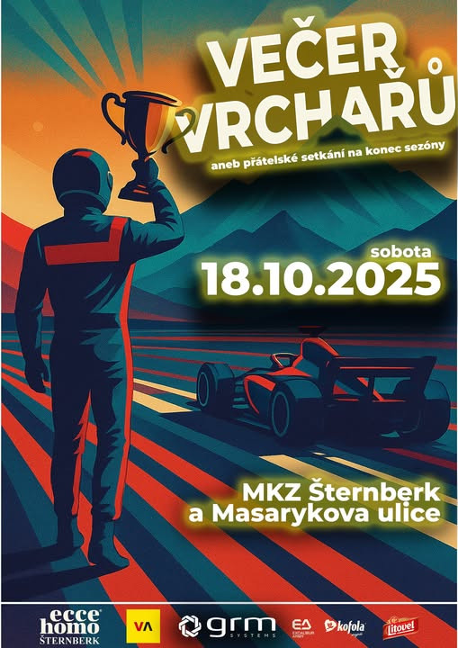 Srdečně vás zveme na Večer vrchařů, přátelské setkání na konec sezóny, které se uskuteční v sobotu 18. 10. 2025 v Kulturním domě ve Šternberku. Těšit se můžete na setkání jezdců, fanoušků i přátel motorsportu v příjemné atmosféře. Také na skvělou hudbu, občerstvení a nebude chybět samotné ocenění jezdců. Večerem provede vždy skvělý Martin Straka.